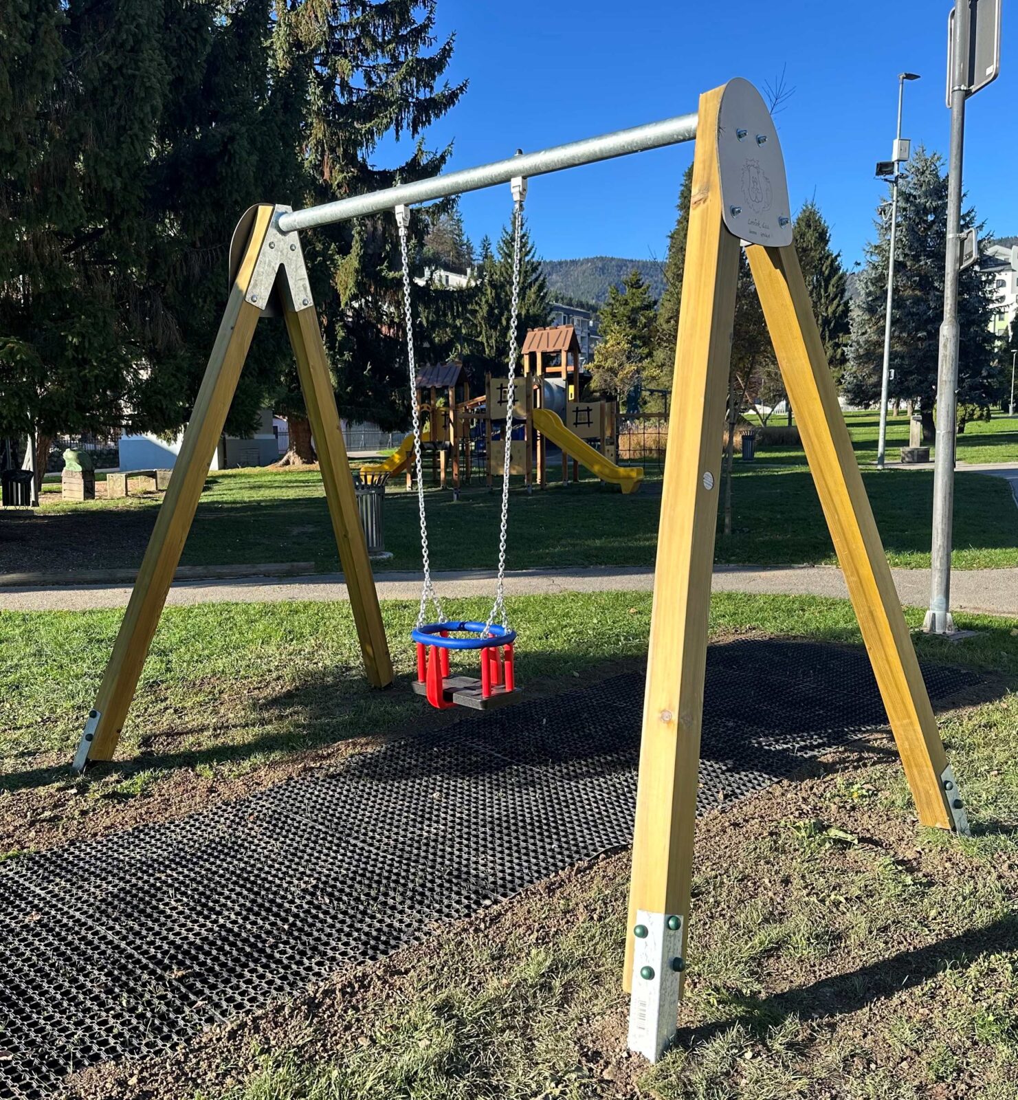 Enojna gugalnica iz kombinacija žaganega kotlovsko impregniranega lesa iglavcev in vroče cinkanega prečnega elementa